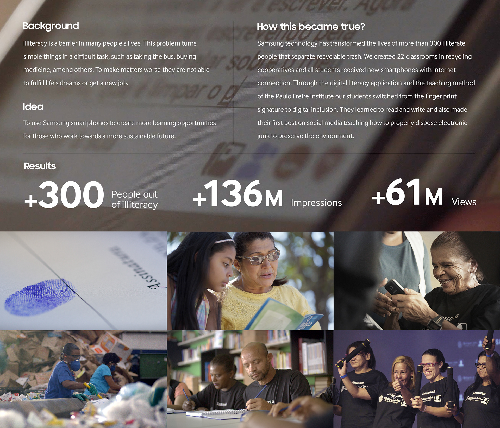Illiteracy is a barrier in many people's lives. This problem turns simple things in a difficult task, such as taking the bus, buying medicine, among others. To make matters worse they are not able to fulfill life's dreams or get a new job.